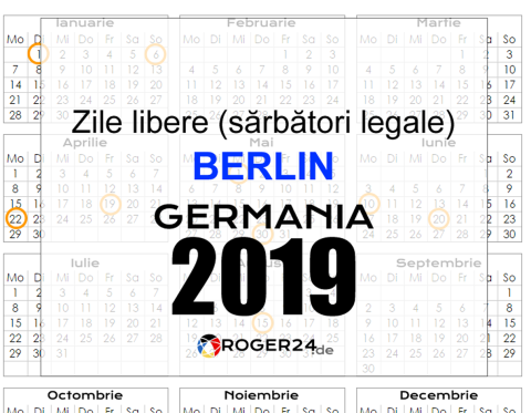 Structura anului, zile libere în Berlin, Germania în 2019